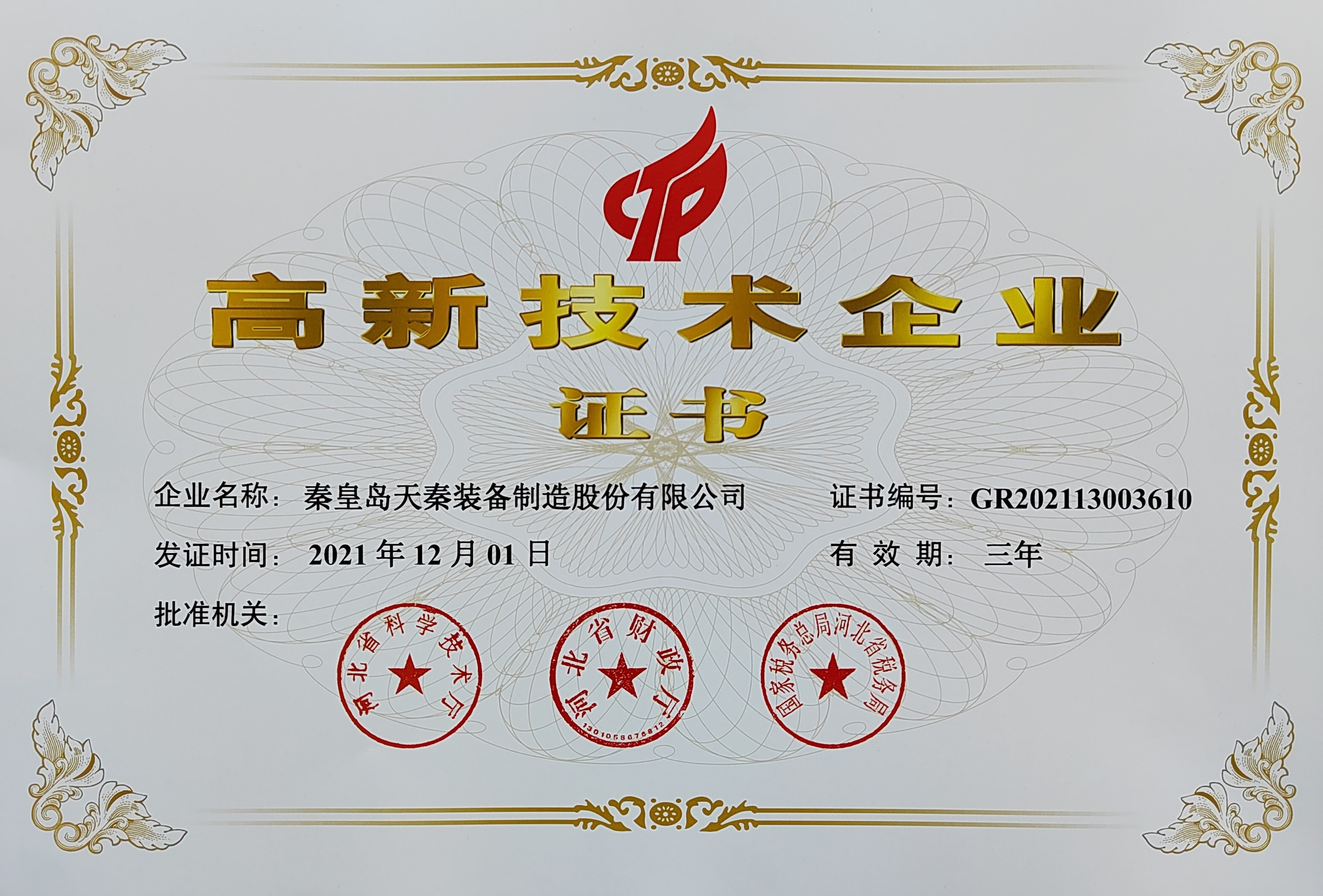 • 秦皇島天秦裝備制造股份有限公司創(chuàng)立于1996年,總部位于河北省秦皇島市經(jīng)濟(jì)技術(shù)開發(fā)區(qū),秦皇島廠區(qū)占地4萬平方米,擁有3萬平方米的標(biāo)準(zhǔn)廠房、辦公樓和工程技術(shù)研發(fā)中心;分部天津廠區(qū)位于天津市靜海經(jīng)濟(jì)開發(fā)區(qū),占地2萬平方米,擁有1.6萬平方米標(biāo)準(zhǔn)廠房。 公司通過了GB/T 19001質(zhì)量管理體系及GB/T 24001環(huán)境管理體系認(rèn)證,是國家高新技術(shù)企業(yè)、河北省軍民融合產(chǎn)學(xué)研用創(chuàng)建基地,建有省級(jí)院士工作站。
